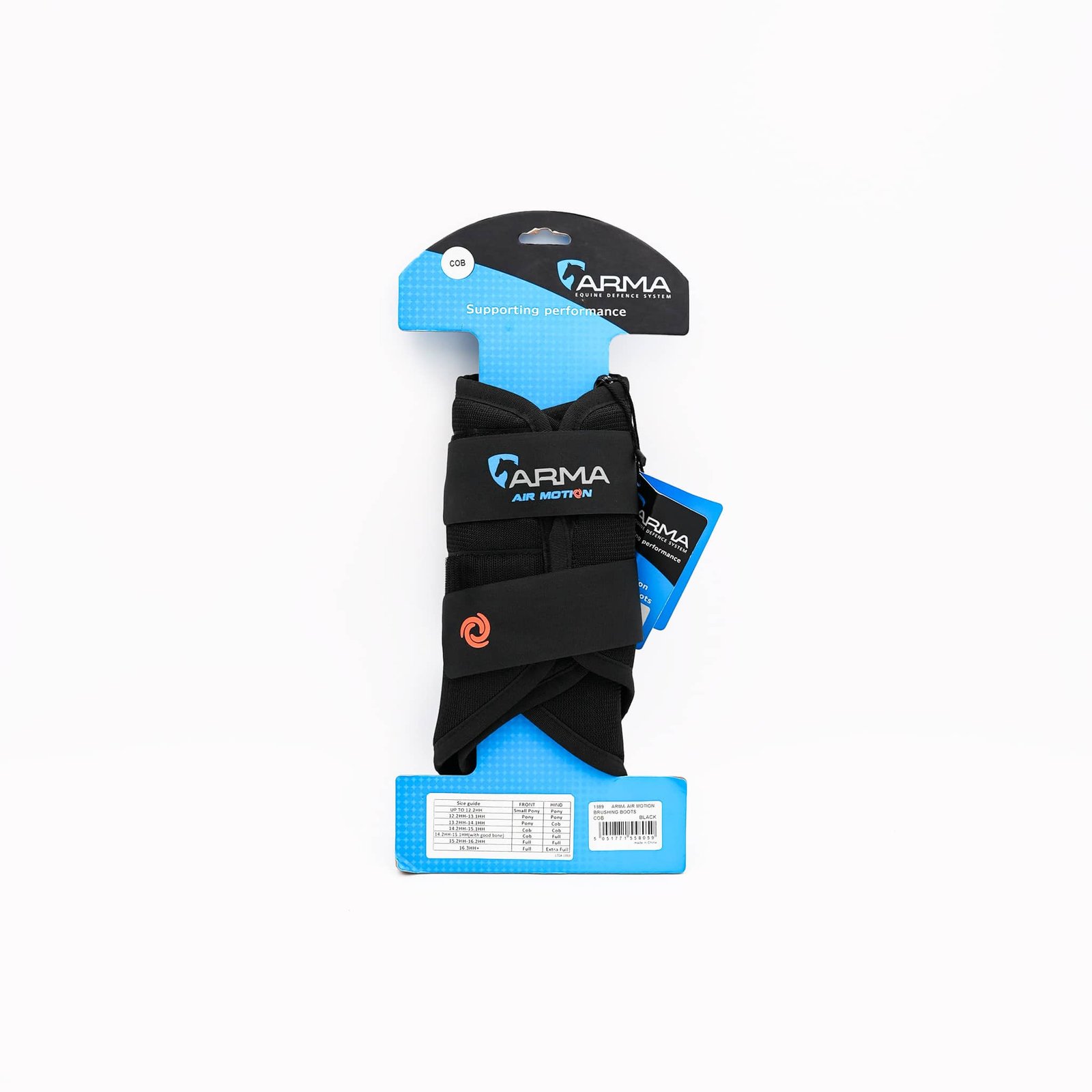 These Shires Arma Air Motion Brushing Boots are designed to protect a horse’s legs from brushing/slapping injuries during training or turnout. The Air Motion fabric allows air circulation to help keep legs cooler and reduce heat build-up. They incorporate shock-absorbent, strike-resistant pads on the outer shell and strong, adjustable closure systems for a secure fit. Suitable for horses with leg length/width in the Cob range.