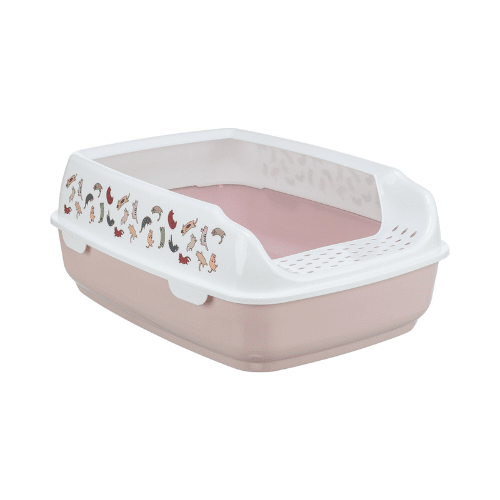 The Trixie Delio Litter Tray with Rim features a wide exit lip and elevated sides to help prevent litter and urine from spilling or escaping the tray perimeter. Made of sturdy plastic, it comes in two motif colour variants purple/white and lilac/white matching a size of approximately 38 × 20 × 50 cm. The tray’s design balances ease of entry and exit for cats while offering improved containment, making it suitable for home environments where cleanliness and litter control matter.