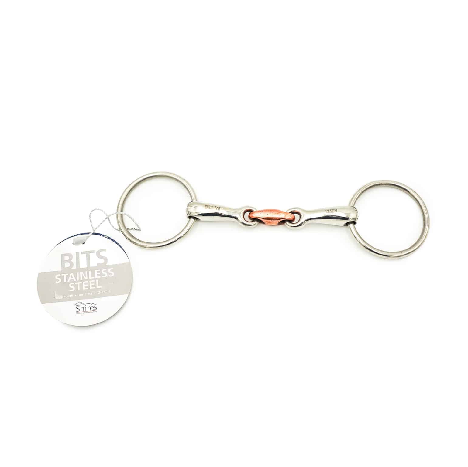 The Loose Ring Copper Lozenge Snaffle by Shires is ideal for promoting comfort, flexibility, and a refined riding experience. Its loose ring design allows for natural movement and helps prevent the horse from leaning on the bit, while the double-jointed copper lozenge sits comfortably in the mouth and improves salivation for better responsiveness. Suitable for schooling, training, and general-purpose use, this bit supports clearer communication between horse and rider without being harsh. Available Sizes: 5″, 5.5″